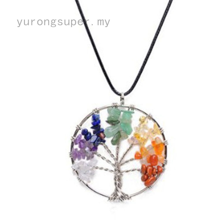 Wholesale Natural Gravel Stone Handmade Tree Of Life Necklace Pendant Rainbow Colorful Wisdom Trees Necklaces Fashion Women Ladies Accessories Jewelry