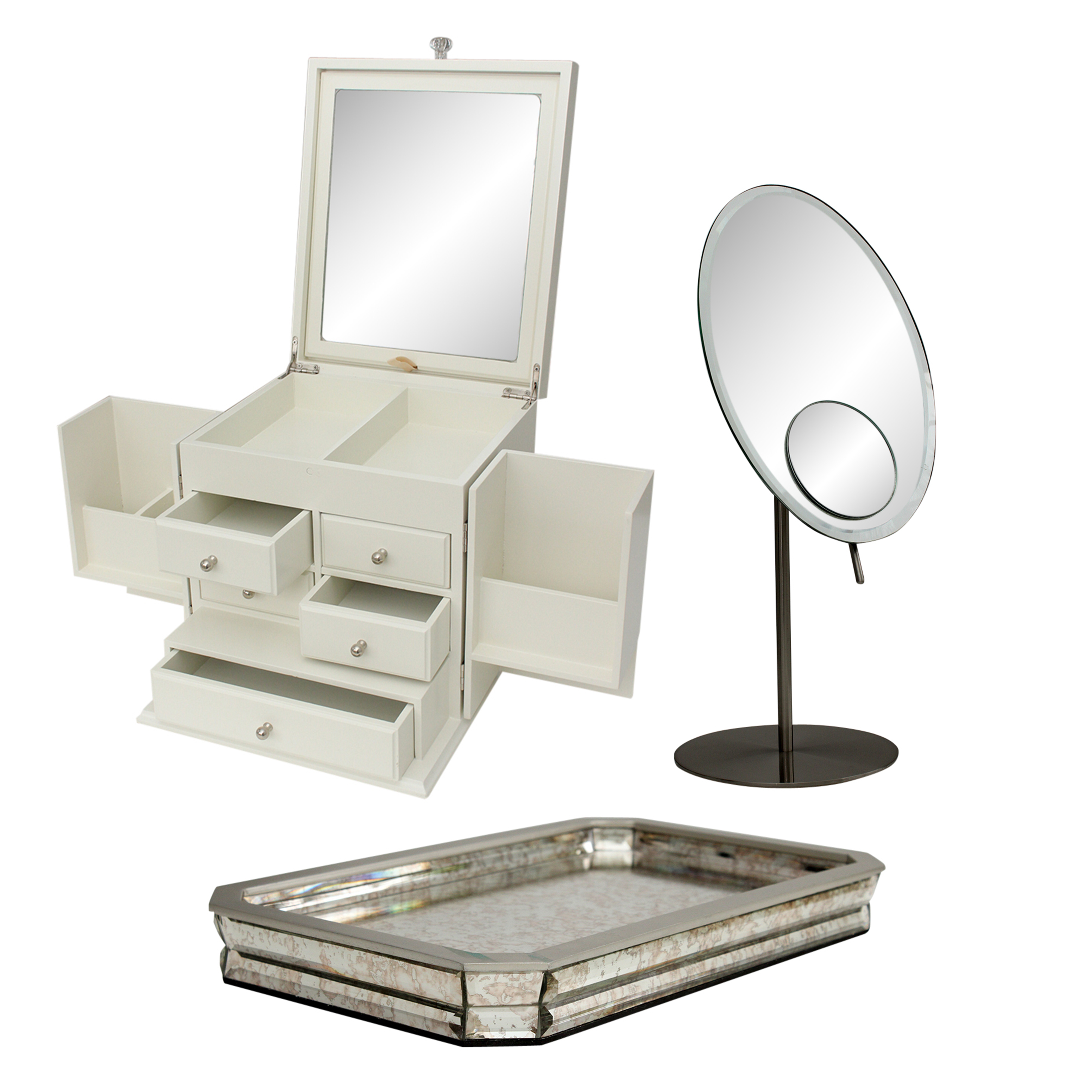 47 out of 5 stars 6. Glass tray jewelry perfume tray vanity organizer mirrored tray with clear glass sides display storage dresser tray home decor tra 108. Best choice products full length standing led mirrored jewelry makeup storage cabinet armoire winterior exterior lights touchscreen shelf velvet lining 4.